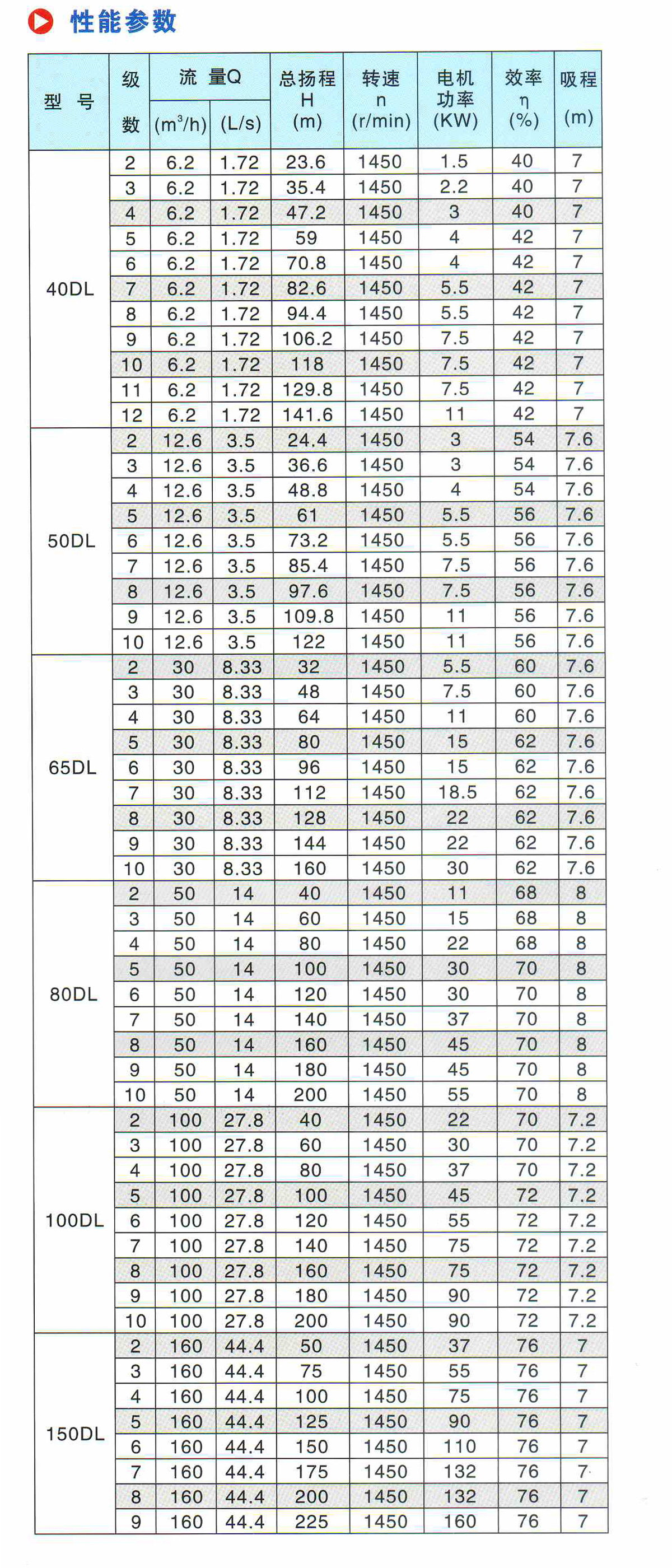 水泵參數說明